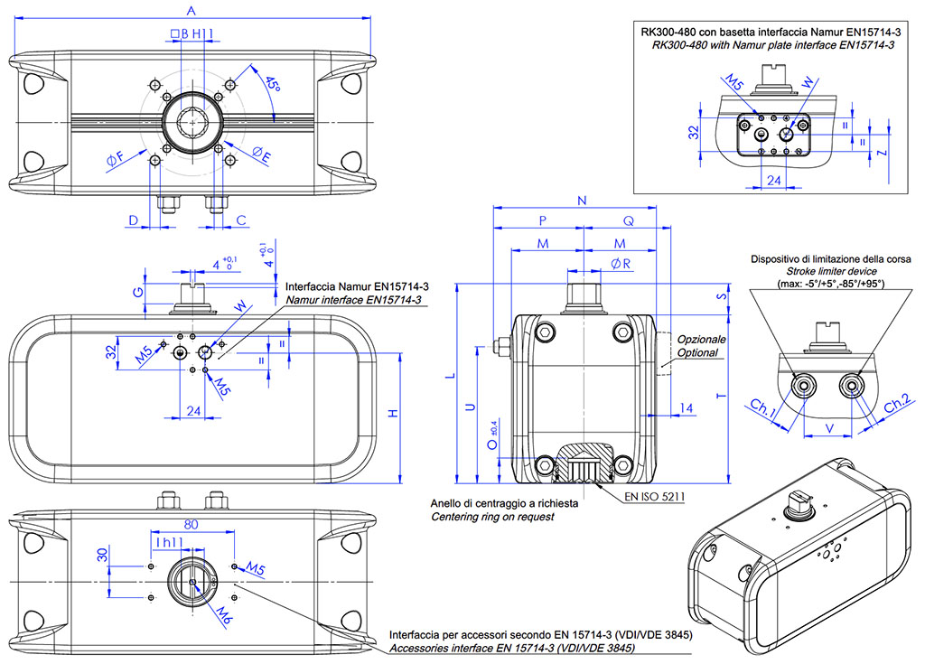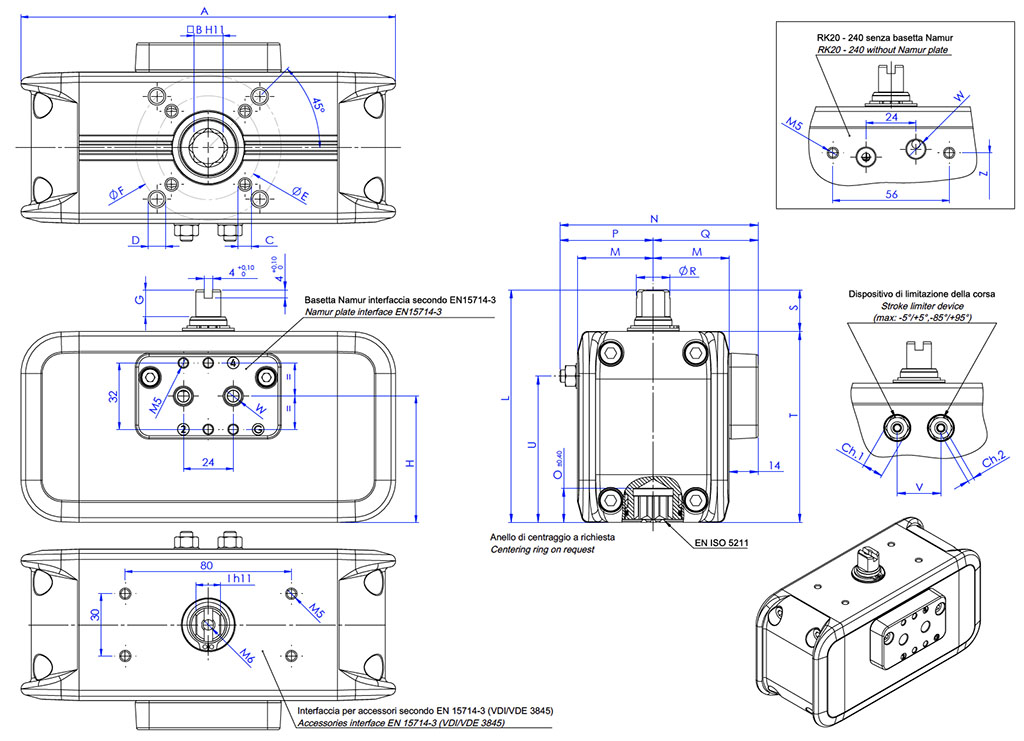 • Bride de raccordement : EN ISO 5211 : F03 - F04 - F05 - F07 - F10 - F12.